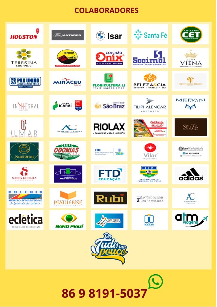 PARAÍBA, HOUSTON BIKE, COLCHÃO ONIX, TERESINA SHOPPING, FORD ANTARES, ISAR BMW, ADIDAS, RIOLAX, FTD EDUCAÇÃO, PAPELARIA PIAUIENSE, SÃO BRAZ, CAFÉ SÃO BRAZ, ATM Viagens, MIRACEU TURISMO.