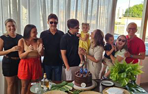 Família reunida em torno do aniversariante Lucas