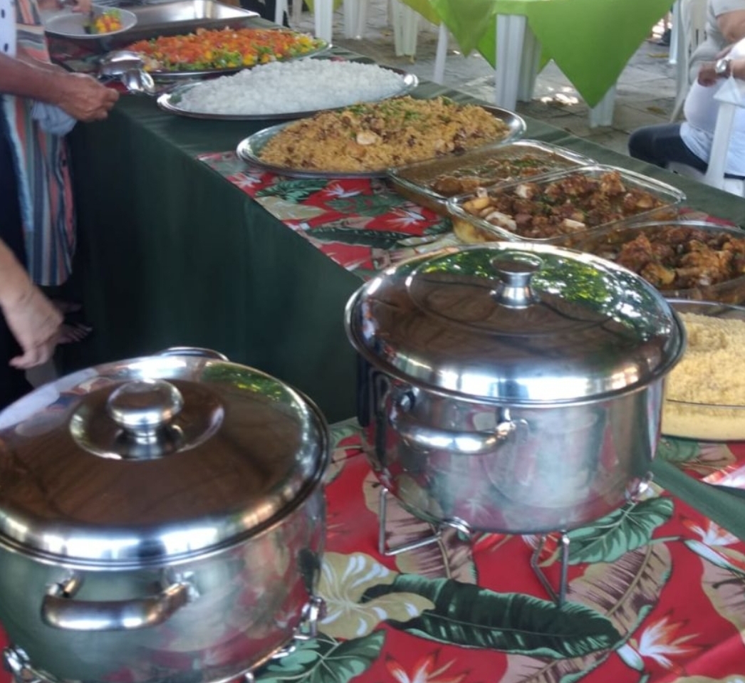 Na festa será servido um farto churrasco de carneiro, logo após o almoço, será servido uma saborosa sobremesa.