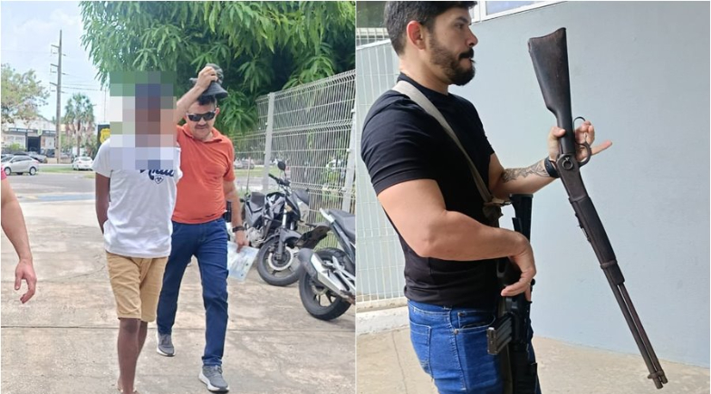 “Os agentes foram até a residência onde ele mora e, quando os policiais abriram a porta, já viram na casa uma arma de fogo, um rifle calibre 38. A moradora da residência disse que ele é o proprietário da arma”, acrescentou Danúbio Dias.