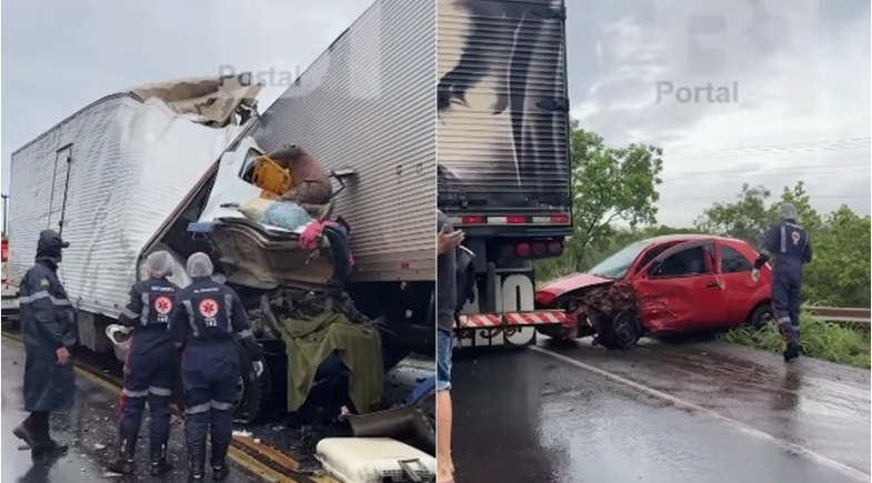 Um grave acidente registrado na manhã desta terça-feira (9) deixou uma pessoa morta e outras feridas na BR-135, no trecho do Povoado Santa Maria, município de Corrente, no sul do Piauí. A colisão envolveu duas carretas e um carro de passeio. No momento do acidente, chovia na região.