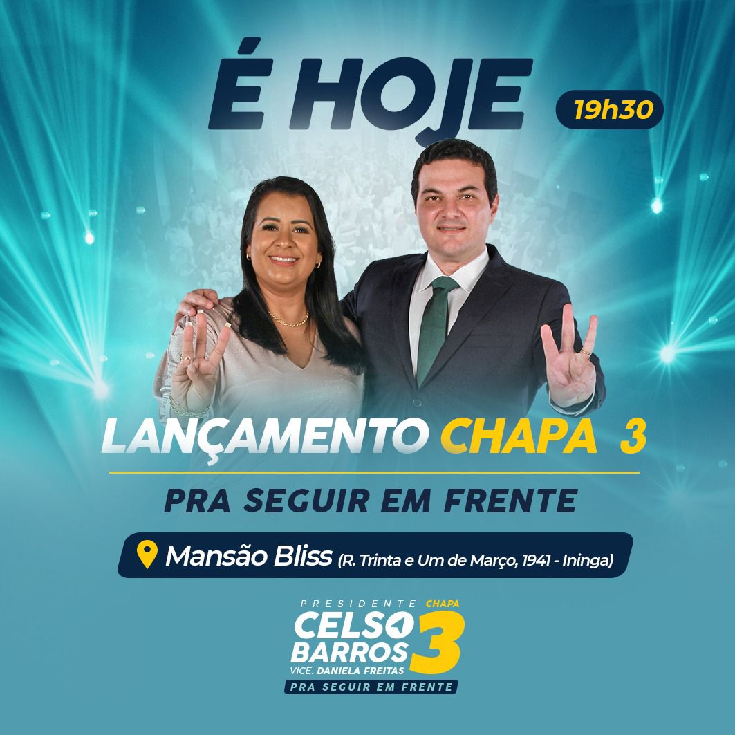 Na tentativa da reeleição o advogado e atual presidente da OAB Piauí Celso Barros, irá lançar na noite desta quinta-feira, 28, sua candidatura, a chapa 3 que ainda tem como candidata a vice-presidente, a advogada Daniele Freitas, o evento acontecerá na Mansão Bliss, às 19:30.