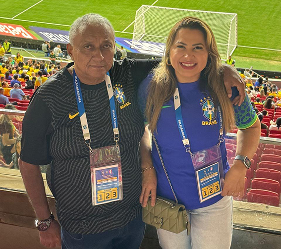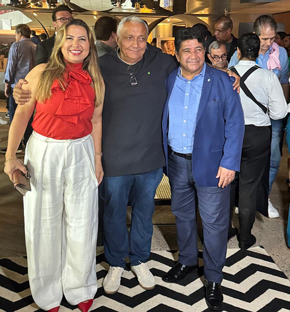 Presidente Brau, da Federação de Futebol do Piauí (FFPI), e esposa, acompanhados do presidente da CBF, Ednaldo Rodrigues, no coquetel antes do jogo Brasil x Peru, amanhã, em Brasília!