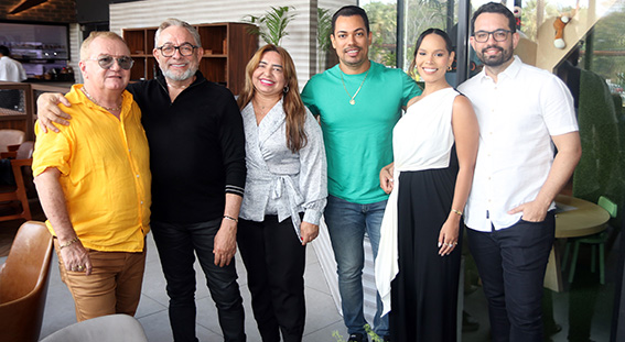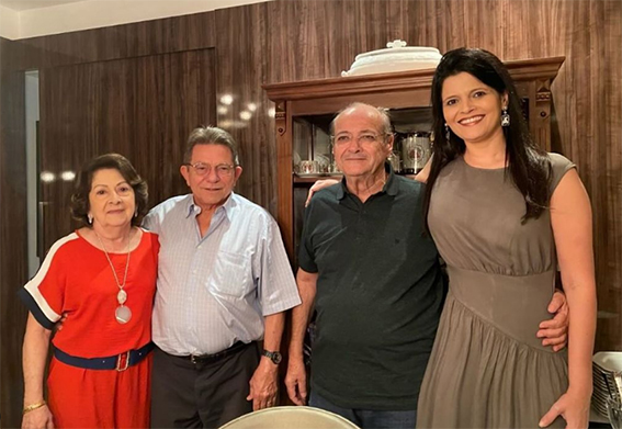Tálita Neiva ao lado do marido, Avelino Neiva, prefeito eleito de Porto Alegre do Piauí, e de Silvio Mendes, prefeito eleito de Teresina, acompanhado de sua filha, Cristina Mendes, em um encontro na capital do Piauí.