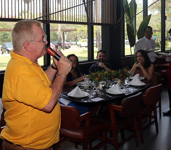 Este colunista com Cristina Queiroz Mendes, filha do prefeito eleito Silvio Mendes, que esteve acompanhada de amigas, no almoço de comemoração do meu aniversário no restaurante Santa Grelha.