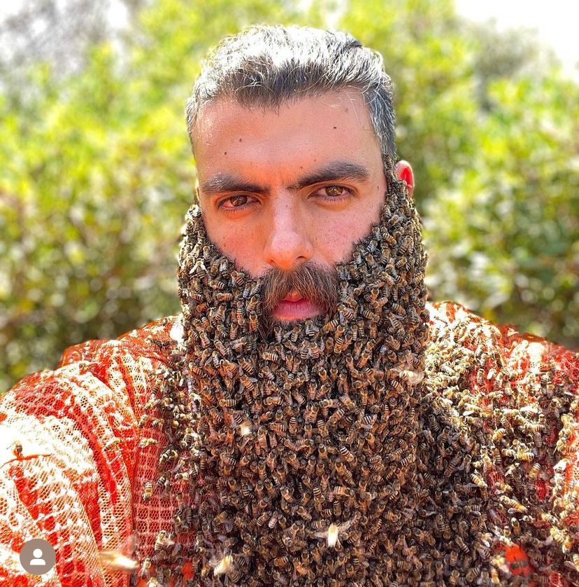 Nas imagens disponibilizadas no Instagram e TikTok, Johny Abou Rjeily está manipulando centenas de abelhas, que chegam a pousar (aos montes) sobre a sua barba. Um dos vídeos já tem mais de 666 mil visualizações.