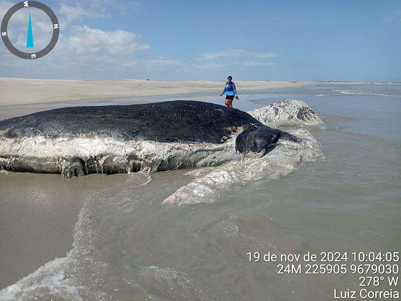 O animal foi encontrado por moradores da região. As baleias desta espécie são avistadas por toda a costa brasileira, em especial no litoral nordestino. Os machos podem chegar a 20 metros de comprimento e pesar 45 toneladas; já as fêmeas, são menores, atingem 17 metros de comprimento e pesam em torno de 14 toneladas.