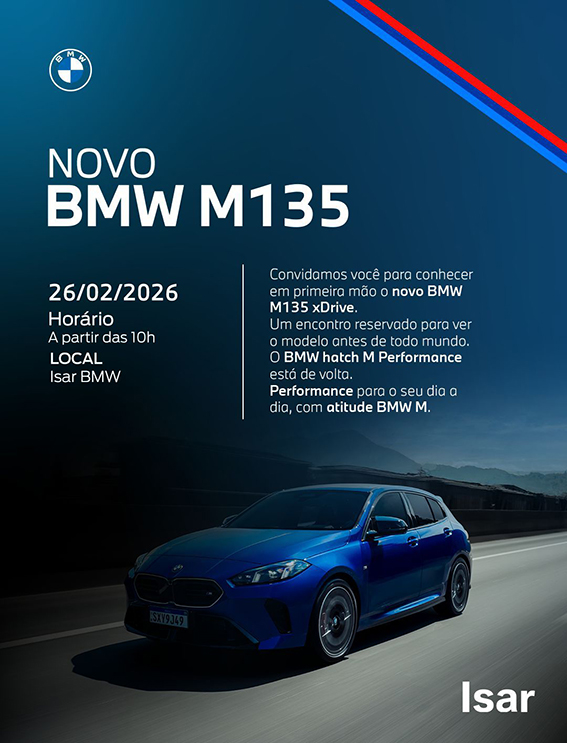 Os apaixonados por alta performance já têm destino certo: a concessionária Isar BMW promove nesta quinta-feira (26) a apresentação oficial do Novo BMW M135 xDrive, um dos hatches mais esportivos e tecnológicos da marca alemã.