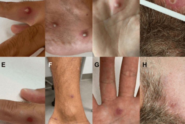 Causada pelo vírus Monkeypox, a doença tem seu contágio por meio de contato pessoal próximo com lesões na pele, fluidos corporais, sangue ou mucosas de pessoas infectadas. O sintoma mais comum da doença é a erupção na pele, semelhante a bolhas ou feridas, que pode durar de duas a quatro semanas. O quadro pode incluir febre, dor de cabeça, dores musculares, dores nas costas, apatia e gânglios inchados. A erupção cutânea pode afetar o rosto, as palmas das mãos, as solas dos pés, a virilha, as regiões genitais e/ou anal.