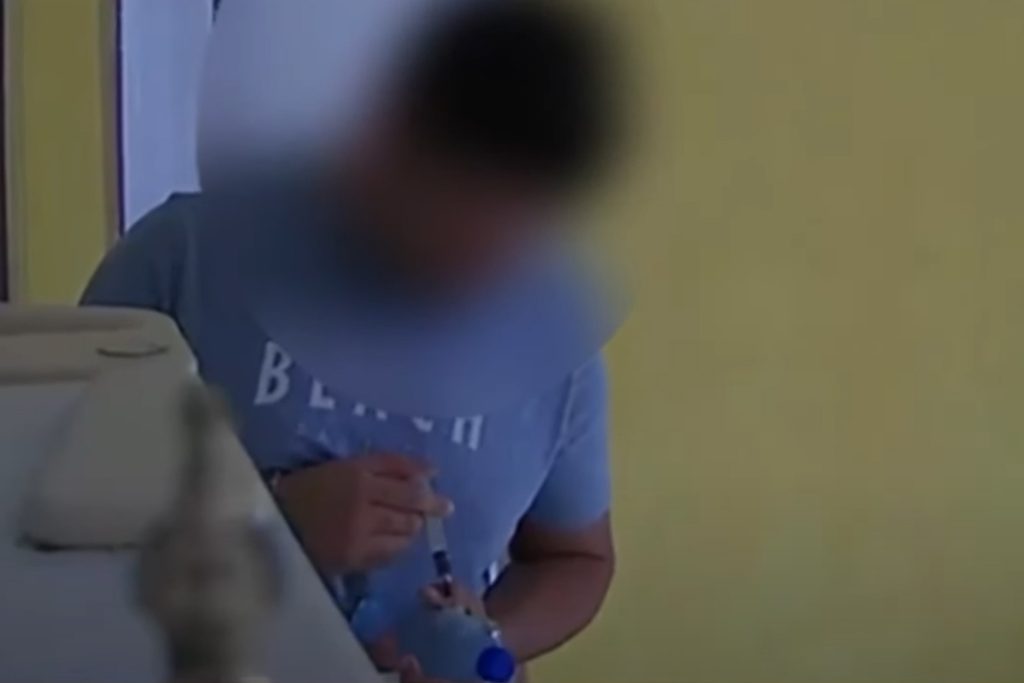 As imagens registraram o momento em que o suspeito abre a geladeira e utiliza uma seringa para injetar a substância nas garrafas de água. A vítima não estava em casa no momento da ação.