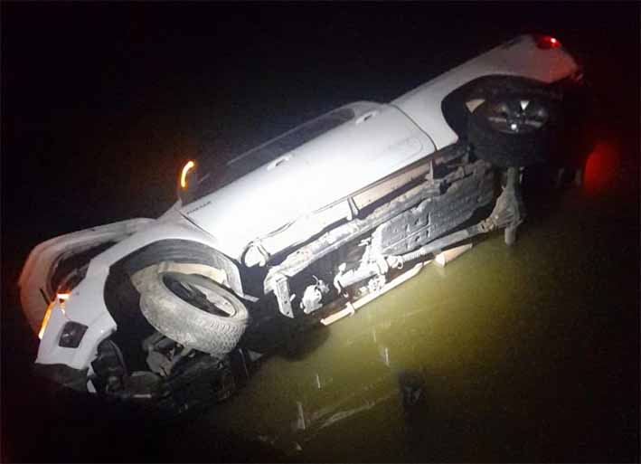 Casal e criança ficam feridos após veículo perder o controle e cair em rio