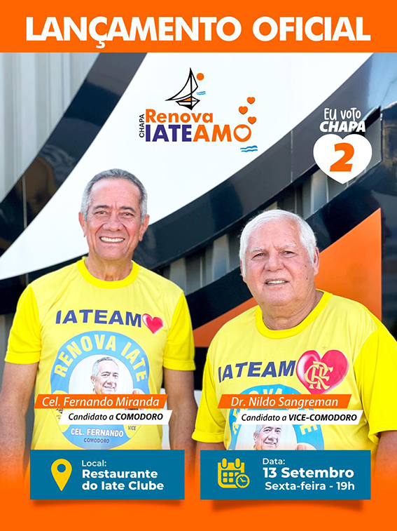 Motivados por um sentimento de afeto pelo Iate Clube de Teresina, e em busca de renovação, vários ex-diretores e sócios estão lançando a Chapa Renova IateAmo, encabeçada pela candidatura a comodoro do coronel reformado da Polícia Militar do Piauí, Fernando Miranda, que tem como vice o cirurgião torácico Nildo Sangremam. O lançamento oficial será nesta sexta-feira, 13 de setembro, no restaurante do Iate Clube de Teresina, às 19h. As eleições do Clube para o triênio 2025-2027 acontecem em dezembro deste ano e a Renova IateAmo já vem se articulando desde o mês de março, junto a sócios e ex-diretores, pelo propósito de uma gestão inovadora.