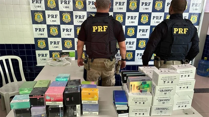 Cigarros eletrônicos e telas de celulares sem nota fiscal são apreendidos pela PRF