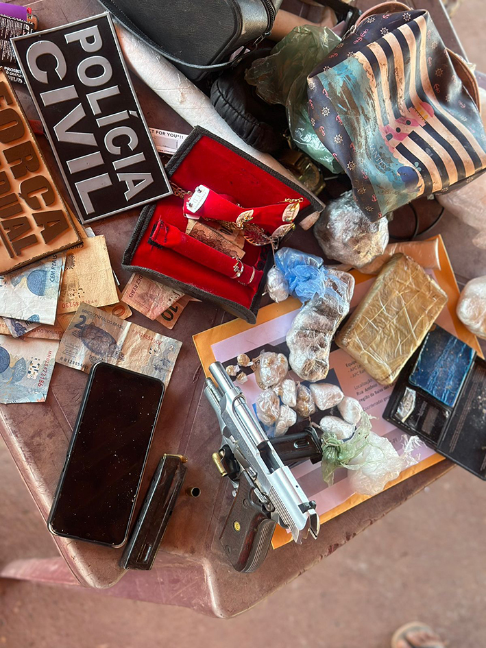 “Duas prisões foram realizadas por porte irregular de arma, e apreendemos uma pistola com munições e um revólver com numeração suprimida. As outras duas prisões foram relacionadas a tráfico, associação e posse de arma. Alguns dos detidos já possuem registros anteriores por crimes como roubo, tráfico e homicídio. Durante a operação, foram apreendidas substâncias ilícitas, incluindo maconha, cocaína e crack, além de embalagens indicando a intenção de comercialização, bem como tabletes e embalagens maiores. Também confiscamos motocicletas pertencentes aos traficantes, capas de coletes, muitos celulares e, em alguns locais de venda de drogas, joias”, detalhou a delegada.