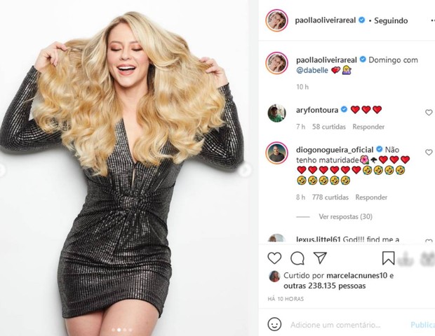 Paolla Oliveira arrancou elogios de seus fãs neste domingo (5) ao compartilhar cliques em que aparece poderosa, usando um verstidinho curto, toda produzida. Mas um seguidor em especial roubou a cena, o namorado Diogo Nogueira, que se derreteu nos comentários do post da atriz.