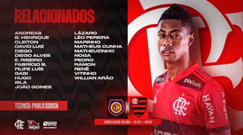 Read MoreO Flamengo divulgou na manhã desta quarta os relacionados para a partida contra o Madureira, às 15h30 (de Brasília), em Conselheiro