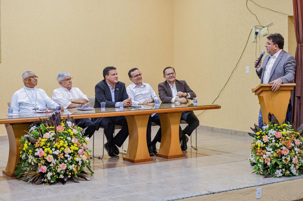 O governador Rafael Fonteles participou, nesta quinta-feira (20), do lançamento da Escola de Formação Fé e Política Dom Miguel Câmara, da Igreja Católica. O primeiro ciclo de diálogos envolveu líderes católicos e autoridades, no Centro Pastoral Paulo VI, em Teresina.
