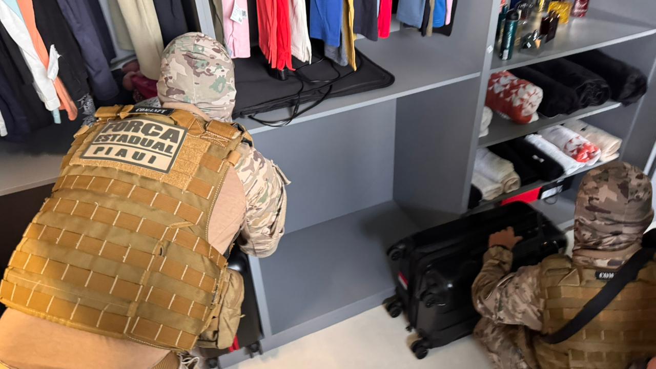 Durante o cumprimento dos mandados de busca e apreensão, equipes encontraram na residência de Gustavo — localizada em um condomínio de luxo na zona leste de Teresina — diversas malas, bebidas, celulares, perfumes e outros produtos de origem estrangeira sem nota fiscal.