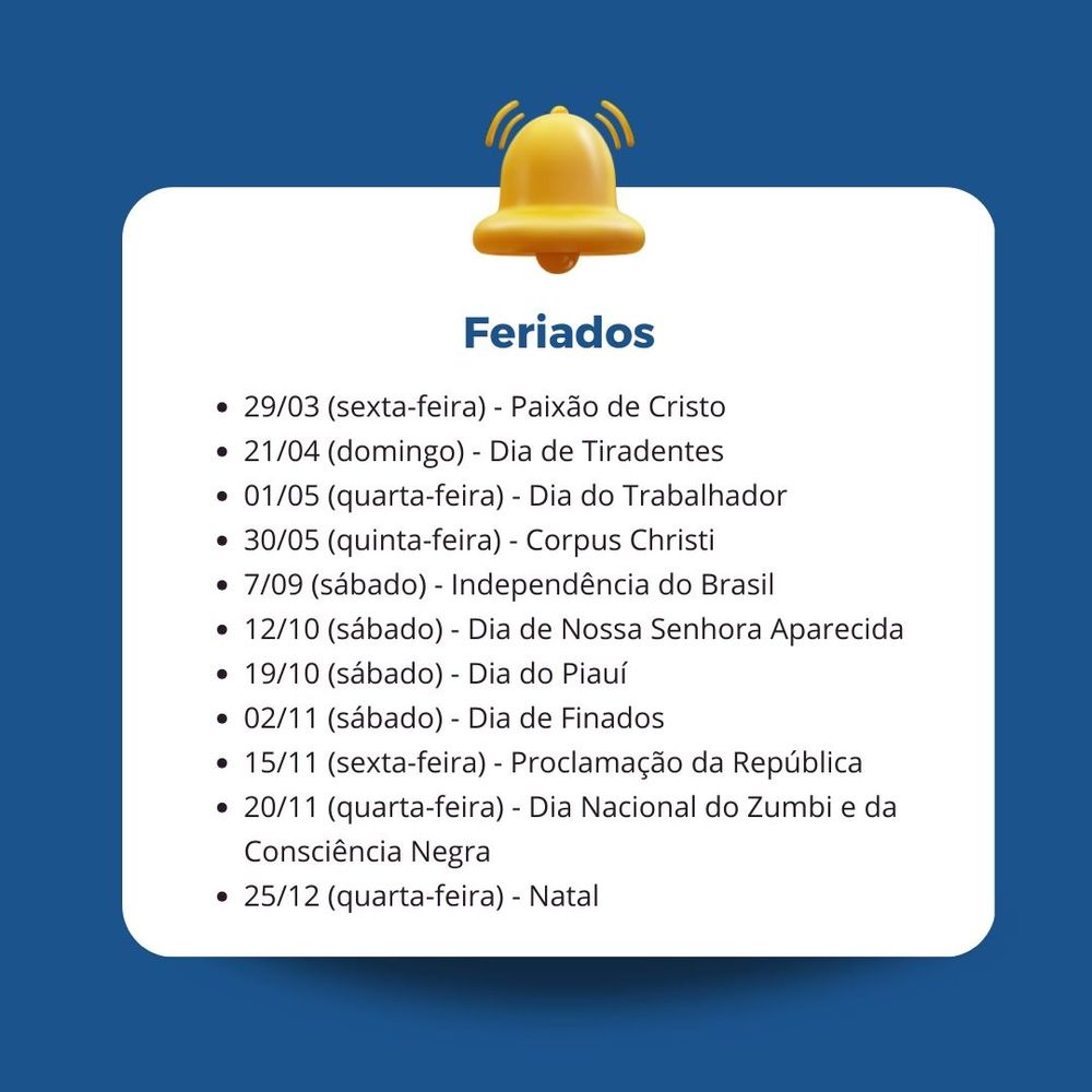 Em 2024, serão oito datas com ponto facultativo e 11 feriados, com destaque para o novo feriado de 20 de novembro, Dia Nacional da Consciência Negra. A legislação obedece à Lei Federal e prevê o funcionamento dos serviços considerados essenciais.