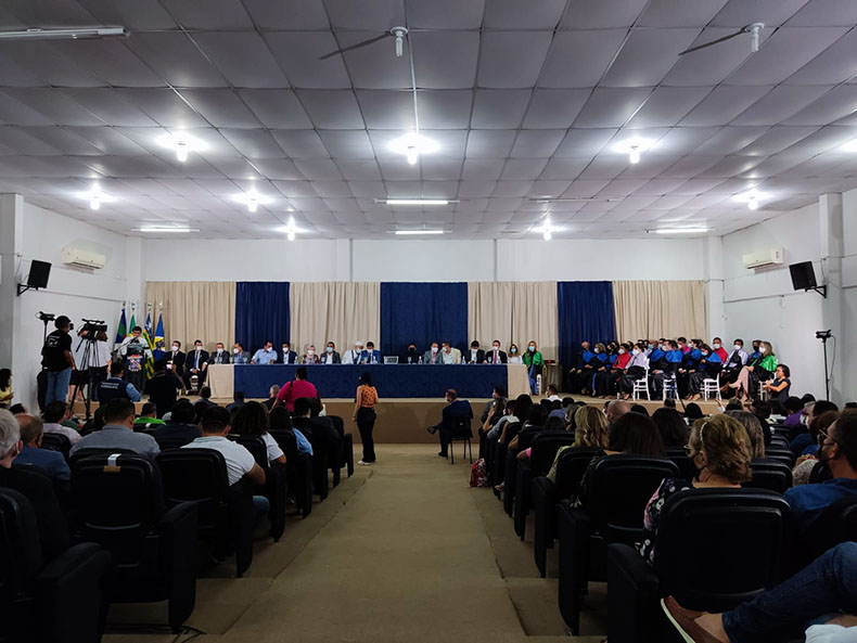 A solenidade ocorreu de forma híbrida e contou com a presença do governador do Estado, Wellington Dias, representantes discentes e discentes e representantes de lideranças políticas, entre outros.