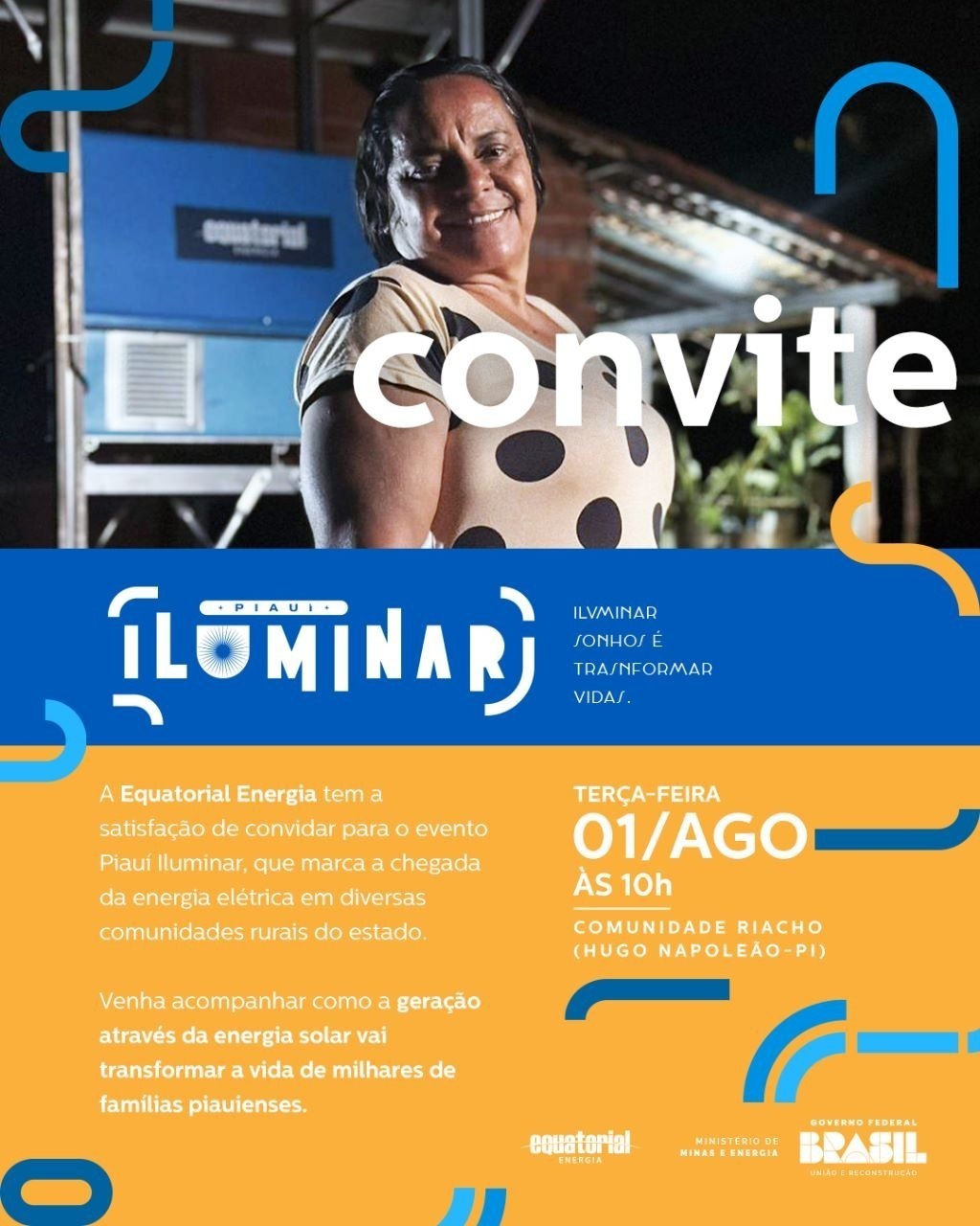A Equatorial Piauí promove o evento Piauí Iluminar, que tem a finalidade de entregar aos 93 municípios contemplados, os Sistemas Individuais de Geração de Energia Elétrica com Fonte Intermitente (SIGFI). O projeto já está em funcionamento levando energia elétrica às famílias das comunidades.