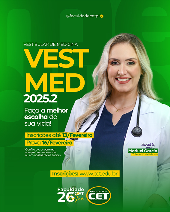 Os interessados podem realizar suas inscrições para o Vestibular de Medicina 2025.2 no site oficial da instituição, www.cet.edu.br, ou obter mais informações pelo telefone (86) 99920-8914.