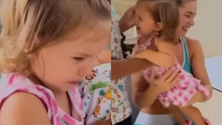 Na ocasião, a esposa do cantor Zé Felipe estava com filha no colo, preparando-a para tomar uma vacina. No entanto, a menina acabou ficando com medo de toda a situação e, chorando, deixou a mãe e correu para os braços de sua cuidadora. Incrédula com a atitude da criança, Virgínia ainda tentou convencê-la a voltar, mas Maria Alice se negou e voltou a chorar para permanecer com sua babá.