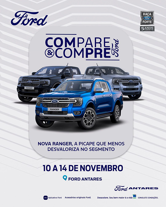 De 10 a 14 de novembro, a Ford Antares realiza o evento Compare & Compre Ford, um verdadeiro convite para quem valoriza potência, tecnologia e condições especiais. 💪