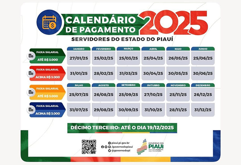 A tabela de pagamento dos servidores públicos do Piauí foi divulgada na tarde desta segunda-feira (13) pelo governador Rafael Fonteles. Por meio de suas redes sociais ele confirmou a informação que circulou no final de semana.