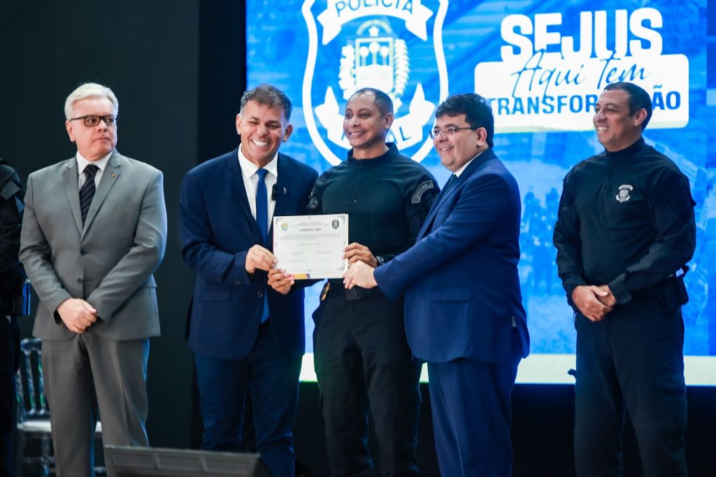 “Muito feliz aqui de estar ao lado do secretário Carlos Augusto nessa solenidade de formatura e já a nomeação desses 207 novos homens e mulheres que vão compor nossa polícia penal. Nós temos feito todo um esforço para melhorar, modernizar e ampliar o nosso sistema penitenciário, inclusive com a meta de ter atividades de educação e trabalho em todas as unidades. E, portanto, esse trabalho dos policiais penais é essencial para a gente garantir que o processo de ressocialização aconteça”, afirmou.