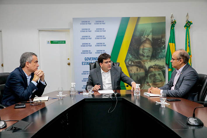 O governador Rafael Fonteles e o secretário de Estado do Planejamento, Washington Bonfim, se reuniram, nessa quinta-feira (9), no Palácio de Karnak, com o secretário de Estado da Irrigação e Infraestrutura Hídrica, Firmino Paulo. De acordo com o chefe do Executivo piauiense, a meta é aumentar os investimentos em irrigação e fortalecimento da infraestrutura hídrica no estado, em especial nos projetos produtivos às margens de barragens e rios do Piauí para incentivar a geração de renda da população.