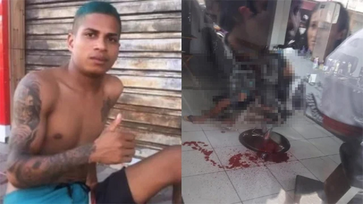 Imagens feitas por populares é possível ver o homem, identificado como Luís Dias, popularmente conhecido como “Luisinho”, com o corpo recaído na cadeira de uma barbearia.  O 17º BPM foi acionado, se dirigiram ao local e isolaram a área para os primeiros levantamentos.