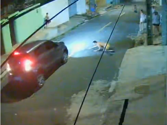 A cena foi presenciada por vizinhos, incluindo crianças. Após o disparo, o suspeito fugiu em alta velocidade.