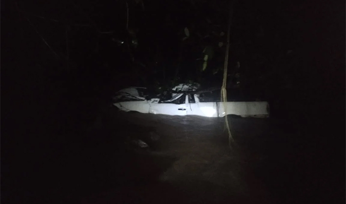 O corpo do comerciante que estava na condução do veículo foi localizado a aproximadamente 400 metros do local do acidente.