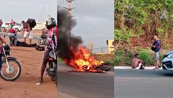 O acidente ocorreu por volta de 6 horas da manhã e deixou o motociclista, identificado como Francisco Eduardo, gravemente ferido e queimaduras de segundo grau. Já o outro motociclista, Valdemir Ribeiro, ficou com lesões pelo corpo e seu estado de saúde ainda é desconhecido.