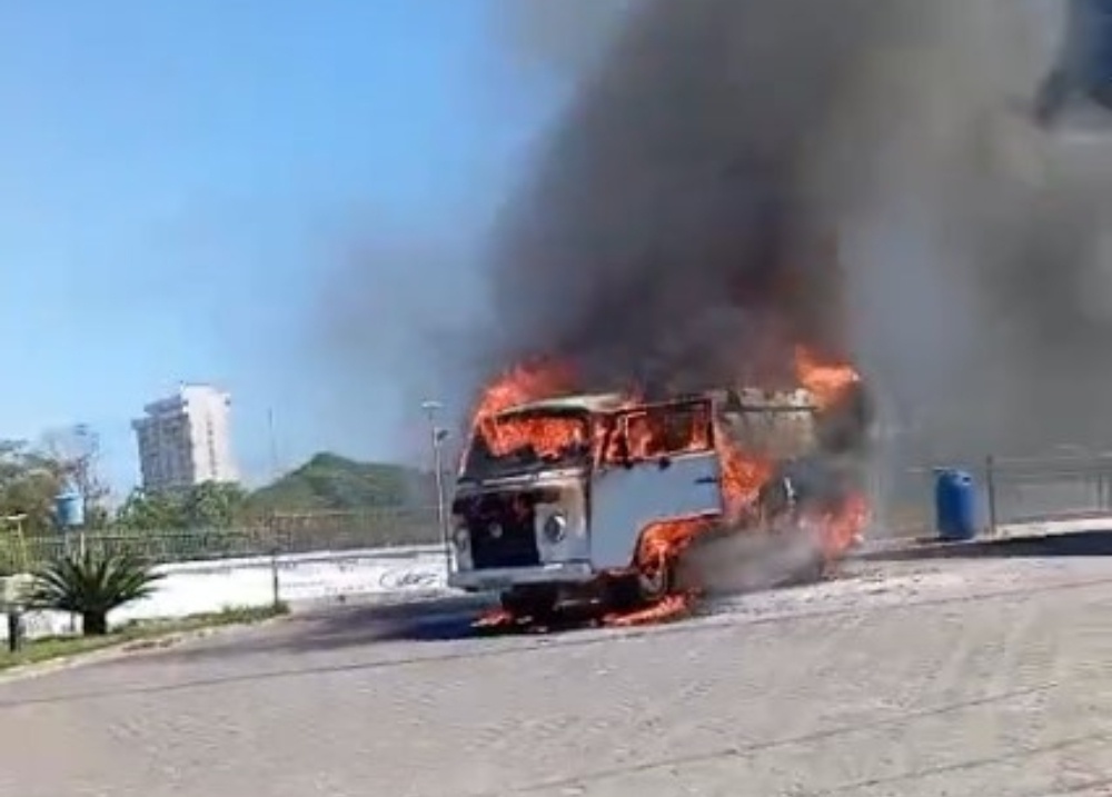 Imagens feitas por populares que passavam pelo local mostram o veículo totalmente tomado pelas chamas.