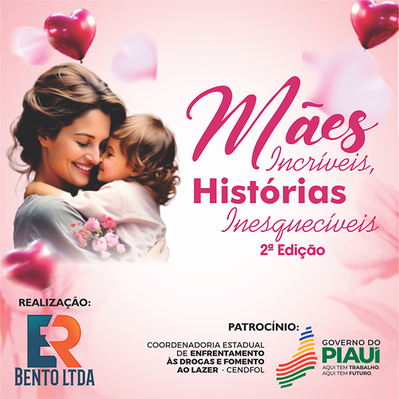 O evento Mães Incríveis, Histórias Inesquecíveis conta com o patrocínio do Governo do Estado do Piauí, por meio da Coordenadoria de Enfrentamento às Drogas e Fomento ao Lazer (CENDFOL/PI), reafirmando o compromisso com o reconhecimento e a valorização da maternidade como um pilar essencial de nossa sociedade.