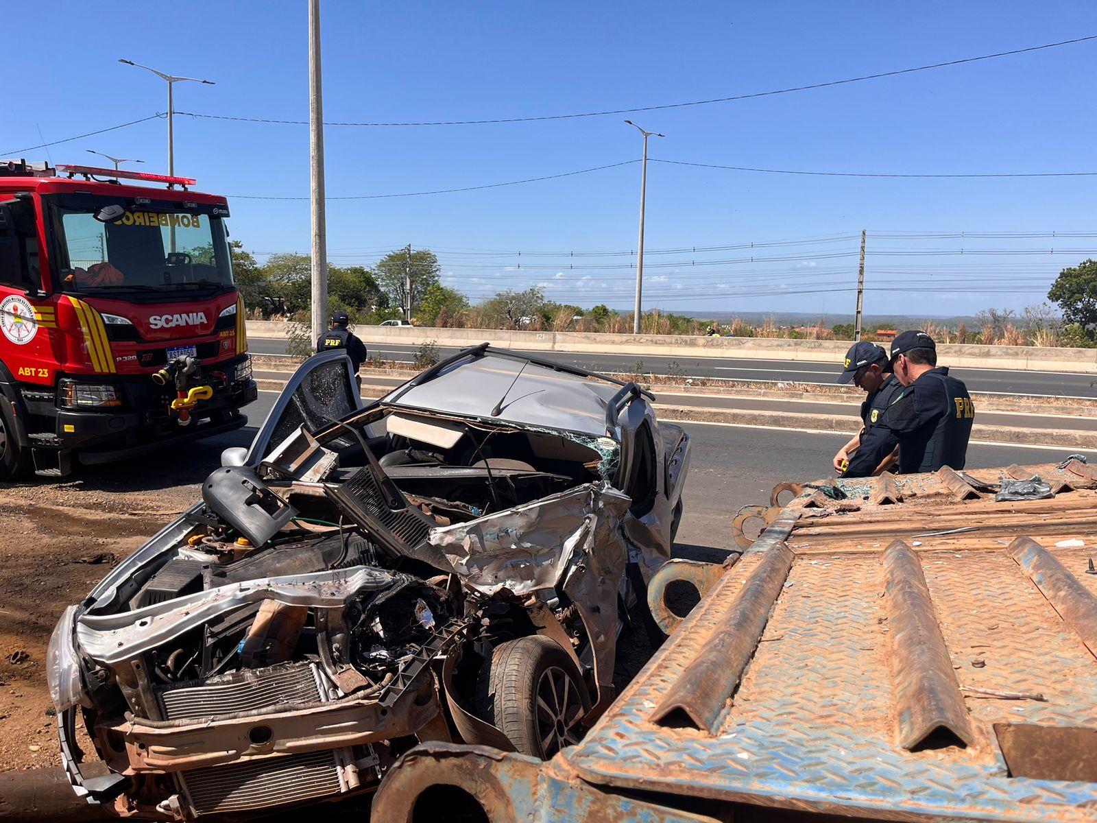 O motorista, identificado apenas como Maicon, que é mecânico, ficou preso às ferragens após colidir o veículo na lateral da via. Ele foi resgatado pelo Corpo de Bombeiros e socorrido pelo Samu.