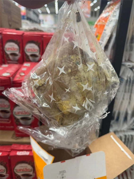 “Apreendemos 40 caixas do produto chocotone de 400 gramas. Os fiscais identificaram a presença de baratas no interior das embalagens e todos eles foram recolhidos das prateleiras e o estabelecimento foi autuado”, relatou o chefe de fiscalização do Procon. As imagens divulgadas pelo Procon mostram panetones com aparência mofada e com resquícios de insetos dentro das embalagens.