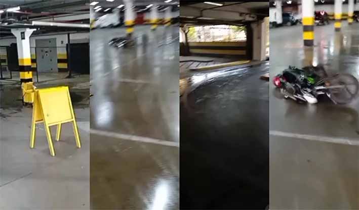 Conforme o motoqueiro, a área estava sendo limpa e não estava sinalizada. “Deixaram o piso molhado aqui sem sinalização, aí a gente entra e cai aqui, dentro do Carvalho da Barão”, disse.