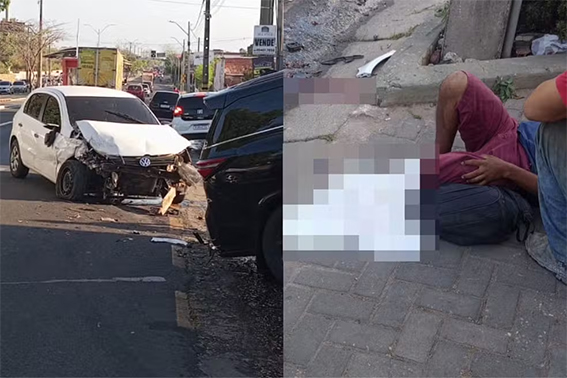 Um motorista passou mal ao volante, esmagou o pé de um ciclista e bateu contra outros dois carros, na manhã desta terça-feira (17), na Avenida Presidente Kennedy, bairro Piçarreira, Zona Leste de Teresina.