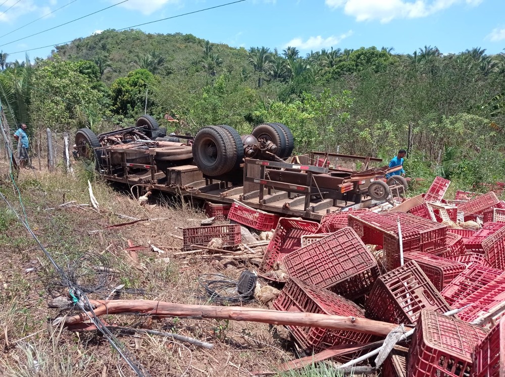 Um homem identificado com Alan Ferreira de Souza, de 22 anos, morreu após uma carreta que transportava frangos tombar na tarde de terça-feira (7), na PI-112, em Miguel Alves, a 103 km de Teresina. De acordo com a Polícia Militar do município, o motorista do veículo ficou ferido.