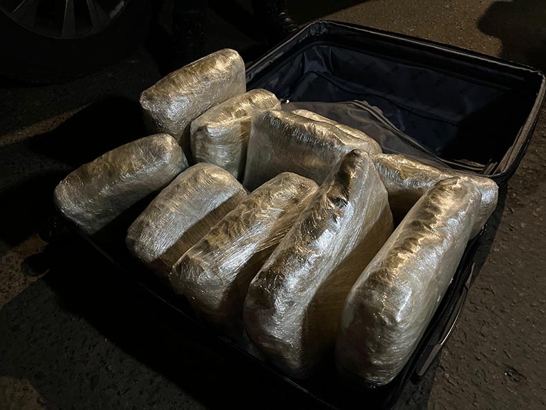“Durante a ação, foram apreendidos aproximadamente 10 kg de drogas, localizados durante uma abordagem do Núcleo de Operações com Cães (NOC), quando uma cadela treinada detectou a presença de uma mala contendo a substância”, informou a polícia.