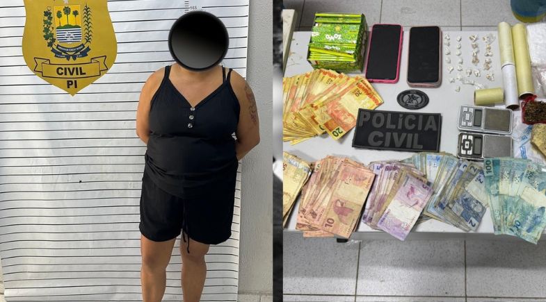 Uma mulher foi presa em flagrante nesta terça-feira (24), no Conjunto Irmã Dulce, bairro Planalto, em Parnaíba, litoral do estado, suspeita de comandar um ponto de venda de drogas instalado em frente a uma escola municipal.