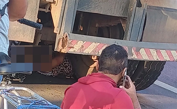 As circunstâncias do acidente ainda estão sendo apuradas, mas testemunhas afirmam que a mulher pilotava a moto quando bateu no caminhão e caiu, ficando entre as rodas do veículo.