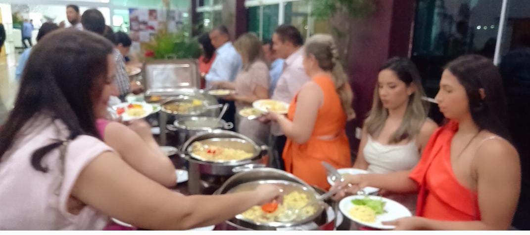 No cadárpio, comidas variadas e seguindo a culinária regional, constando de arroz festivo, salada tropical, salada camponesa, farofa crocante, frango ao forno com batatas, peixe grelhado ao molho de salsa, escalope recheado a moda do Chef, macarrão bavette, molho 4 queijos, Pavê de Chocolate, Frutas Laminadas, 02 Tipos de Sucos, 01 Tipo de Refrigerante, água mineral, espumantes, cervejas e wisky à vontade.