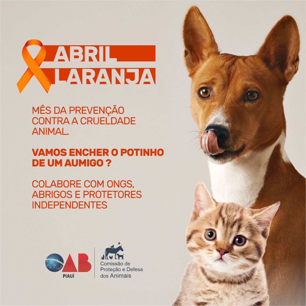 A Comissão de Proteção e Defesa dos Animais (CPDA) da Ordem dos Advogados do Brasil, Seccional Piauí, lançou uma campanha para arrecadação de doações dentro da programação do Mês dos Animais. A ação visa contemplar Organizações Não Governamentais (ONGS), abrigos e protetores independentes de Teresina.