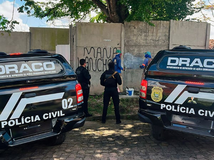 A Polícia Civil do Piauí deflagrou na manhã desta quinta-feira (11) mais uma fase da “Operação Lage”, desta vez no bairro Alto da Ressurreição, na zona Sudeste da capital. O Departamento de Repressão às Ações Criminosas Organizadas (Draco) em parceria com a Prefeitura de Teresina, voltaram à região para retirar as pichações dos muros, com sigla de facções criminosas, espalhados pelo bairro.