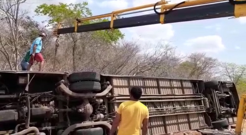 Um ônibus tombou e deixou passageiros mortos e outros gravemente feridos na manhã deste sábado (16), por volta de 9h, na BR 135, em Colônia do Gurguéia, região Sul do Piauí, o ônibus seguia em uma estrada vicinal e ao fazer uma conversão para entrar na BR 135 o motorista perdeu o controle do veículo, que acabou tombando.