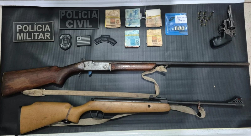 De acordo com a polícia, na residência dele foram encontrados mais material de campanha, arma de fogo, munições e a quantia de R$ 7.500 em espécie. Uma pessoa foi presa em flagrante. Os itens estão sendo analisados para verificar possível relação com os crimes investigados.
